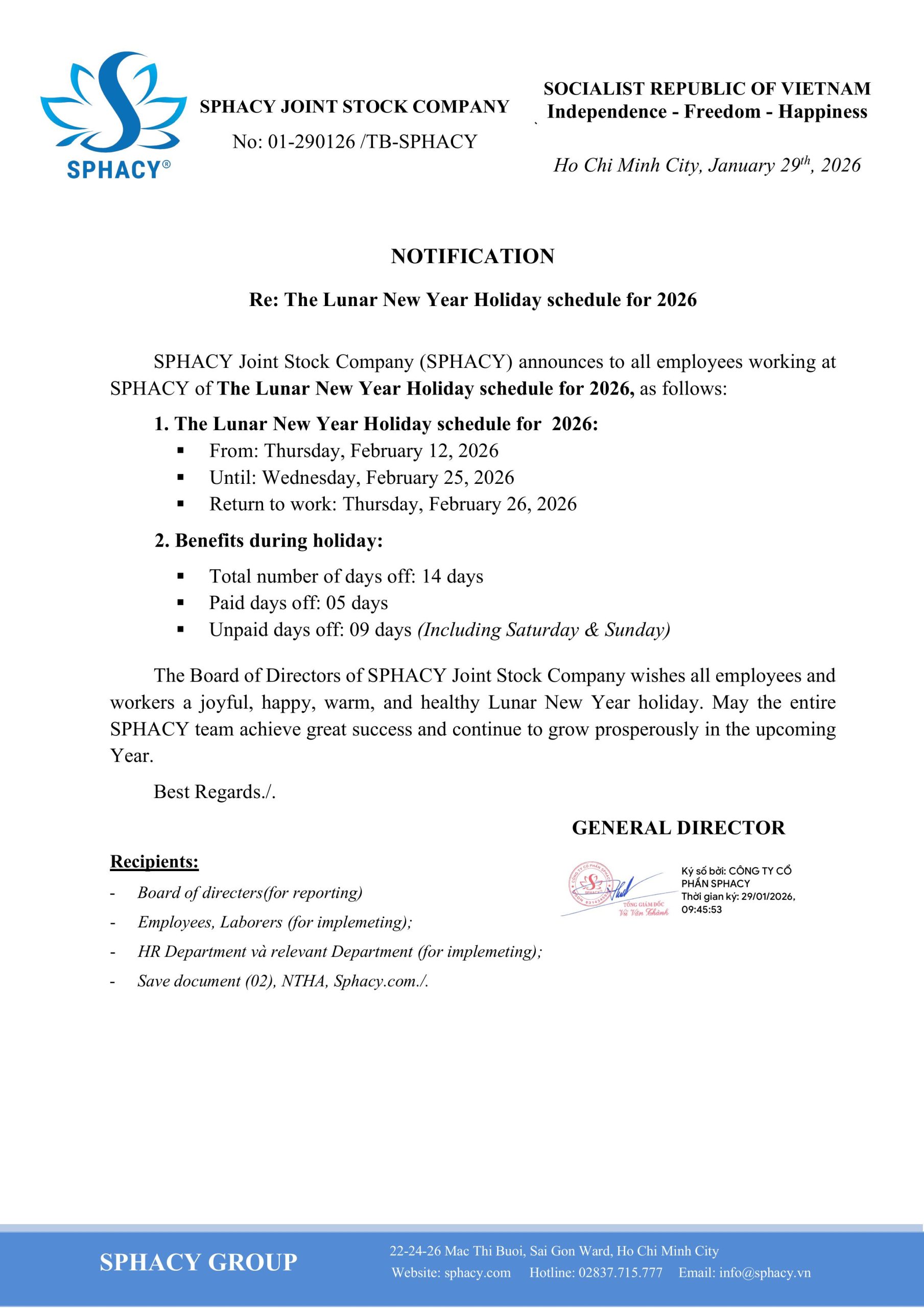 THE LUNAR NEW YEAR HOLIDAY SCHEDULE FOR 2026